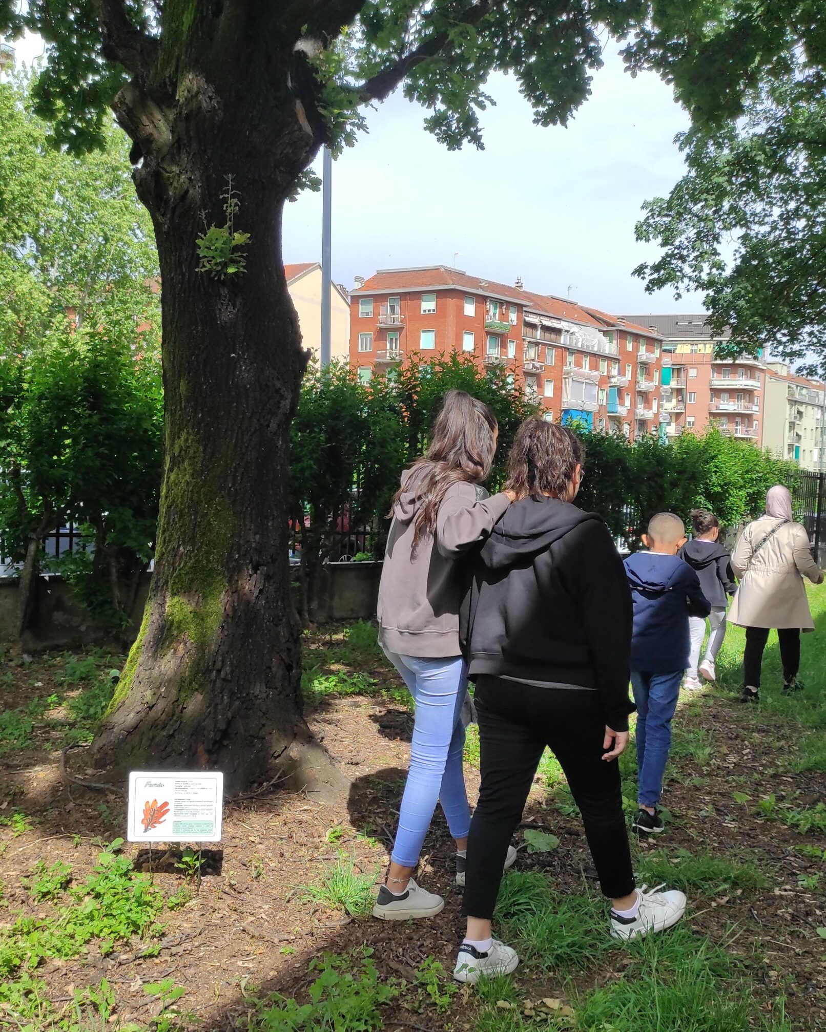 Infine, con i laboratori artistici insieme a Valeria Pavese, i bambini hanno potuto sperimentare diverse tecniche per realizzare delle illustrazioni delle piante del cortile, che sono state inoltre utilizzate per realizzare la cartellonistica botanica.