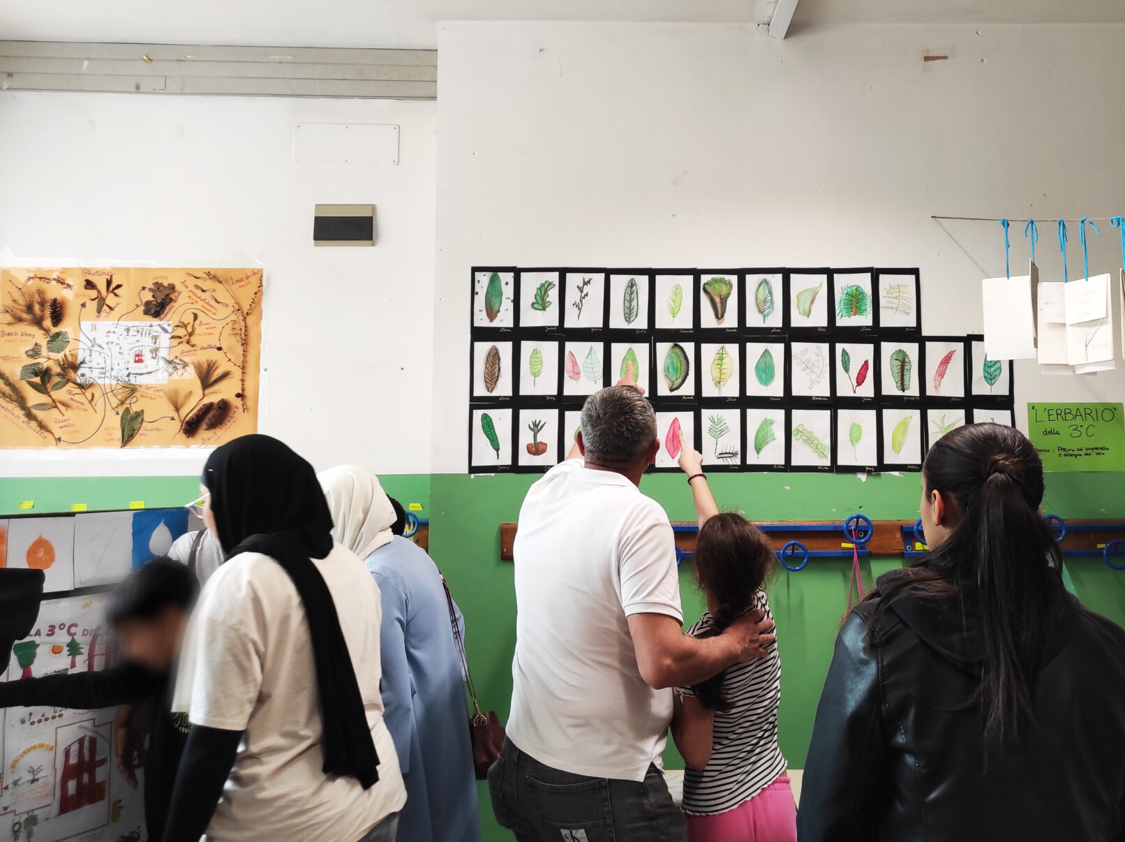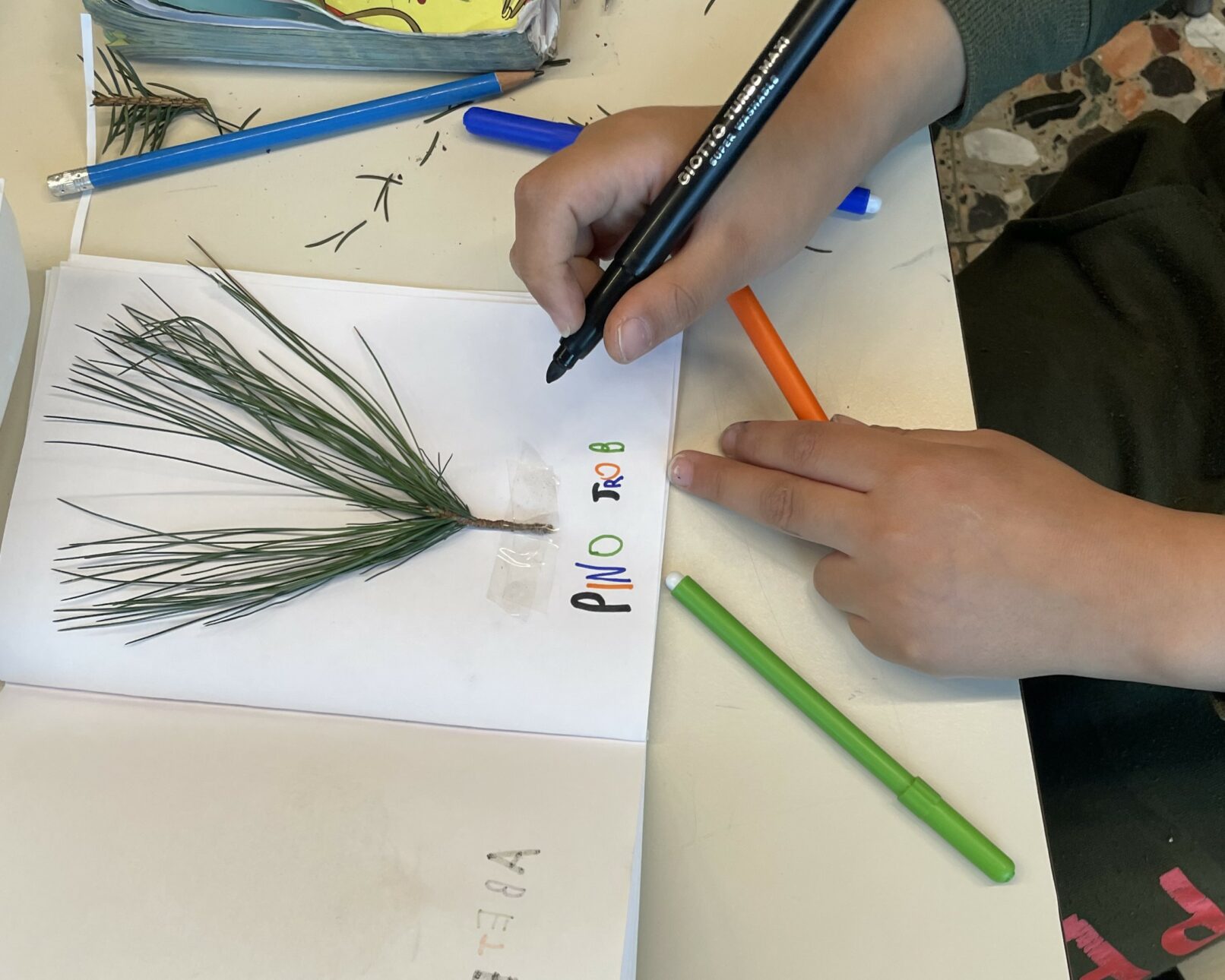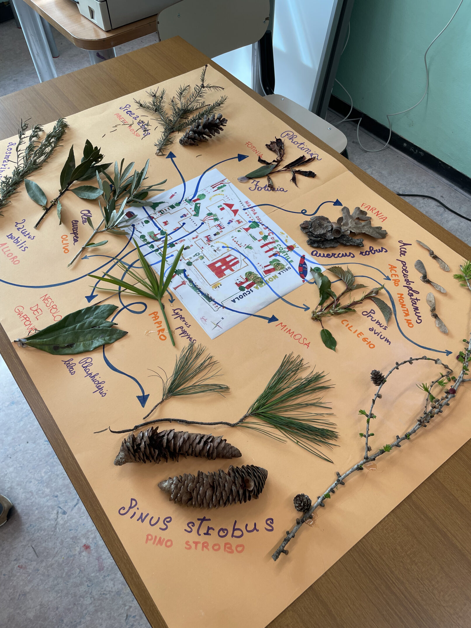 La prima tappa svolta nel 2024 ha coinvolto una classe e ha previsto una fase di conoscenza del proprio cortile scolastico, con la realizzazione della mappa del cortile. Con i laboratori di agronomia insieme a Giacomo Toppi i bambini hanno scoperto e analizzato le diverse specie arboree del cortile, e hanno realizzato l’erbario personale e quello collettivo della classe.