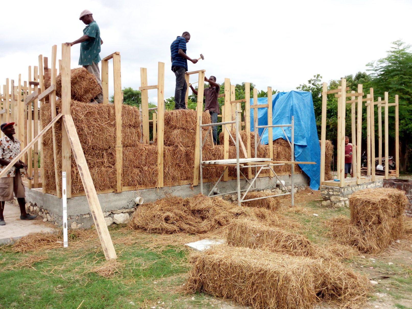 La costruzione è avvenuta attraverso l’organizzazione di un cantiere scuola, che ha visto coinvolti gli operai locali e alcuni risicoltori dell’Artibonite. La sostenibilità ambientale è stato il criterio che ha guidato ogni scelta tecnologica: pneumatici esausti per le fondazioni, blocchi di paglia pressata per le murature, calce locale per le finiture, bottiglie in plastica per il controsoffitto.