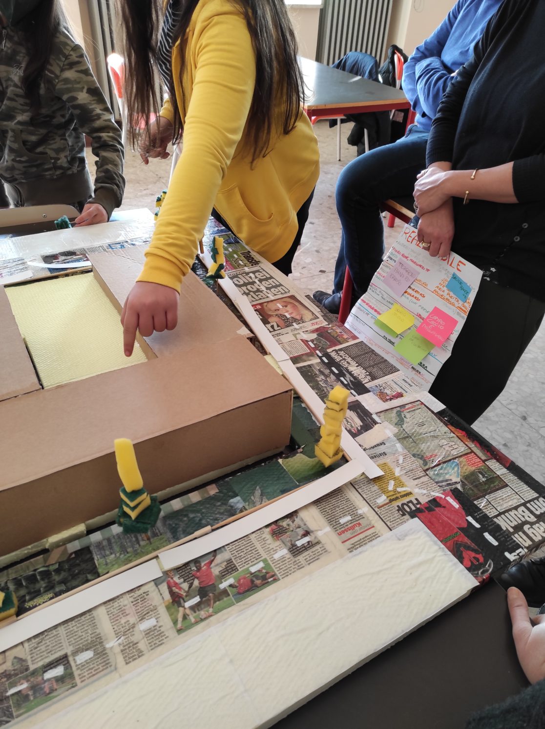 - realizzazione di un plastico concettuale del cortile della scuola, per identificare e visualizzare le aree di intervento e definire i possibili cambiamenti del cortile